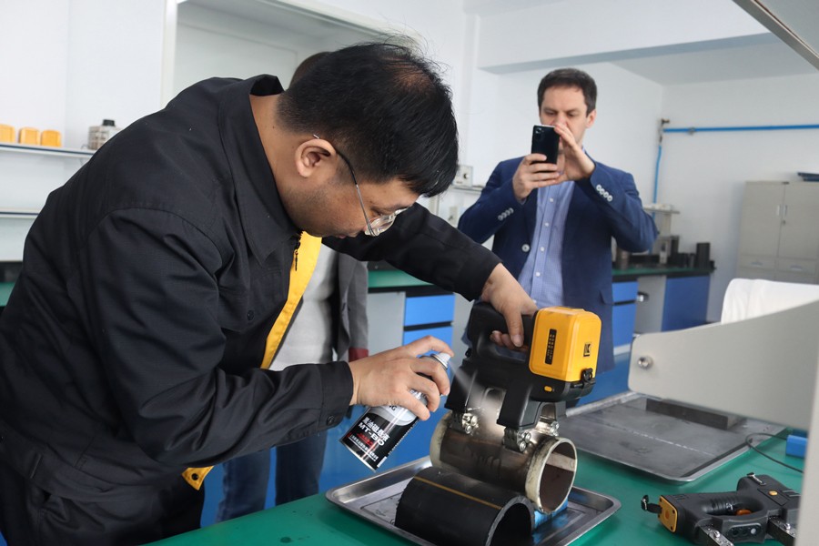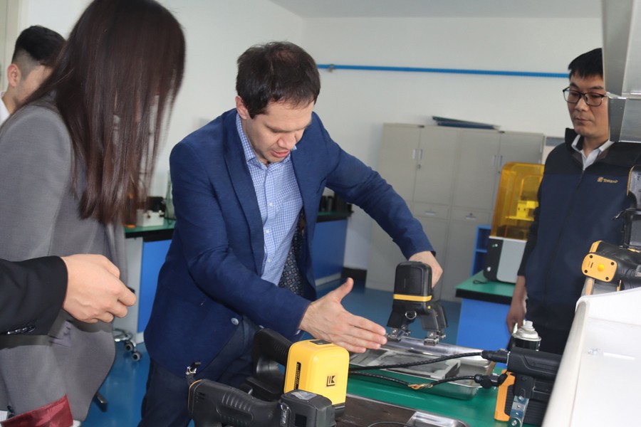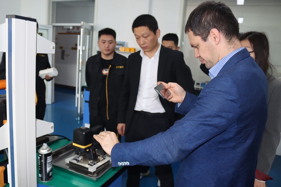 Denis先生先后參觀了我公司無塵車間、實驗室等,對我公司自主研發(fā)的無線式磁粉探傷儀、管道磁粉探傷儀、角焊縫磁粉探傷儀等設備進行性能測試,均達到預期效果,并對我公司研發(fā)、生產(chǎn)及售后能力給予高度肯定。
